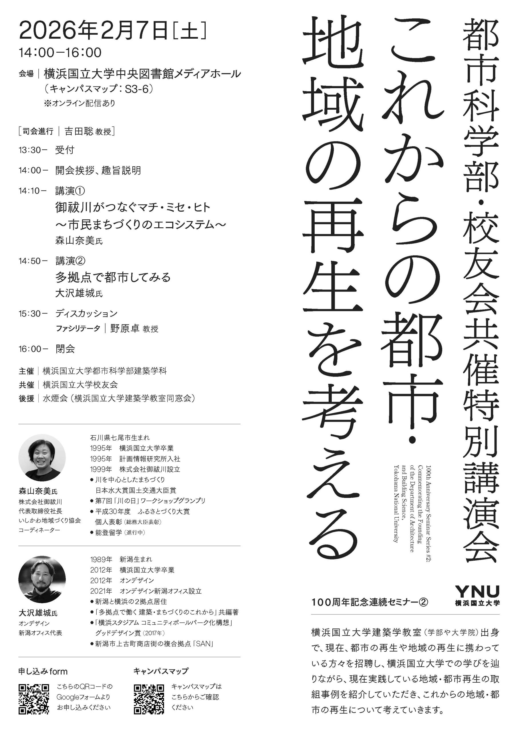 建築学科創設100周年を記念した「100周年記念連続セミナー②」を都市科学部・校友会共催特別講演会として開催いたします。